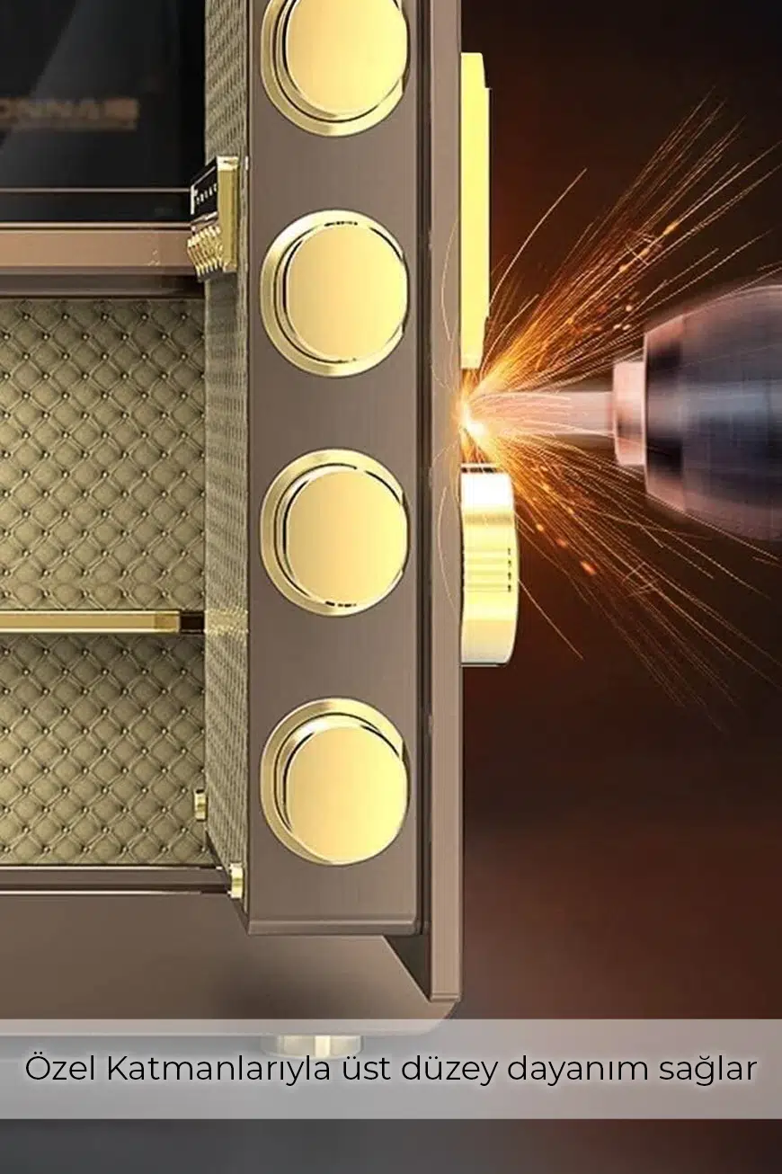 Bu sağlam kasa, değerli eşyalarınızı çizilmelere ve hasarlara karşı koruyarak, tam güvenlik ve gönül rahatlığı sunar.